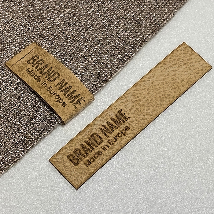 Етикет от естествена кожа, модел EP-M46, подходящ за пришиване на дрехи, чанти, обувки и различни аксесоари, персонализиран чрез лазерно гравиране с името на марката. Този модел кожен етикет е изработен от висококачествена истинска кожа, използвайки съвременна техника и професионални методи за лазерно гравиране или релефно щамповане.