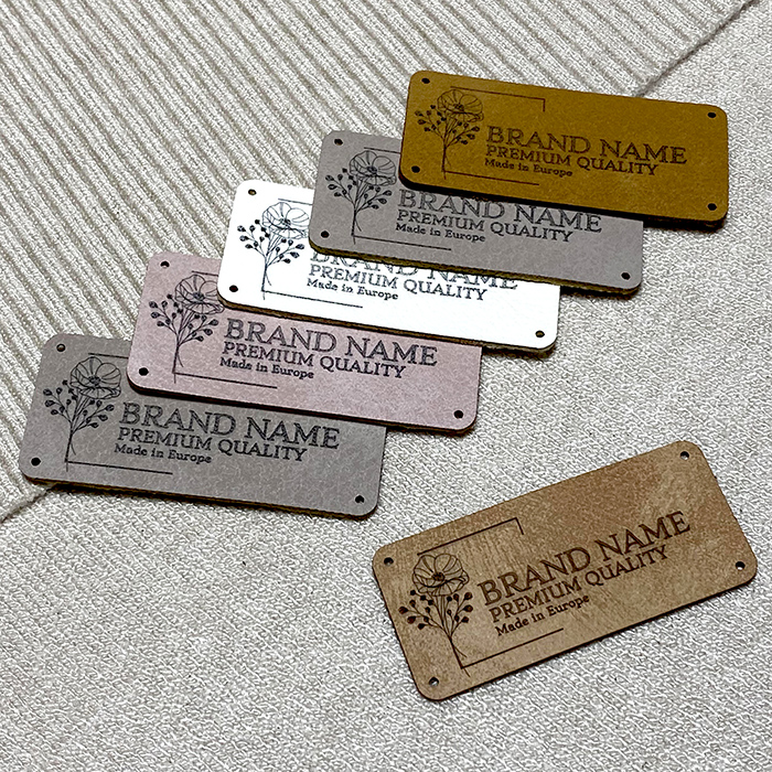 Етикет от изкуствена кожа, персонализиран по поръчка чрез лазерно гравиране с името или логото на производителя, модел EP-M101, за различни дрехи, ръчно изработени или създадени в шивашко ателие. Този модел на етикет от изкуствена кожа е изработен от полиуретан, известен също като синтетична кожа, с високо качество, използвайки високопроизводителни техники и оборудване. Етикетите се изрязват с лазер според размерите, представени на тази страница, а персонализацията се извършва чрез лазерно гравиране с прецизност до 0,2 мм.