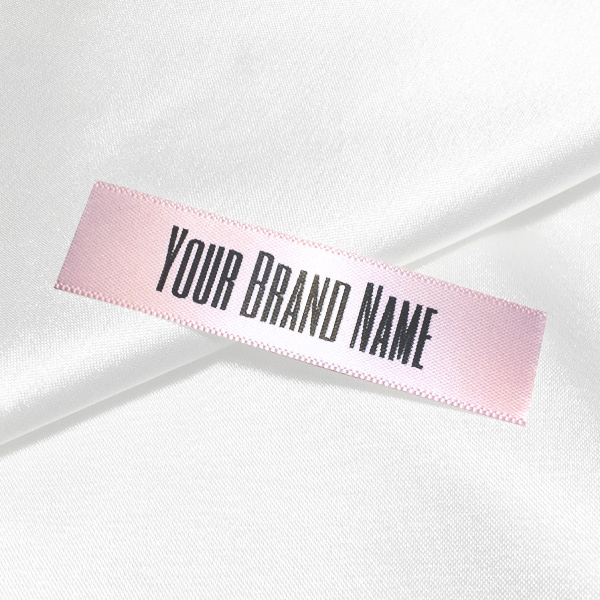 Персонализиран етикет TL-M57 отпечатан върху сатенен плат, подходящи за дрехи, аксесоари и други текстилни продукти.